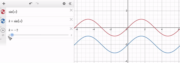 Note that for $k > 0$ the function is shifted towards higher values of $y$ (i.e. upwards) and for $k < 0$ it shifts towards lower values of $y$ (i.e. downwards). The x-axis remains unaffected. Example of $f(x) = sin(x)$ in red and $g(x) = k + sin(x)$ in blue: